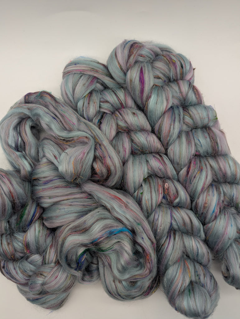 A gorgeous blend of 66% extra fine merino , 17% Tussah Silk and 16% Sari Silk