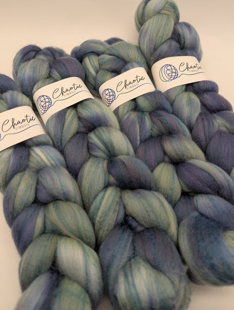 A Blend of Polwarth and Teal Bamboo, the Bamboo adds shine and drape to a soft wool, great for next to skin projects. 100g/3.5oz