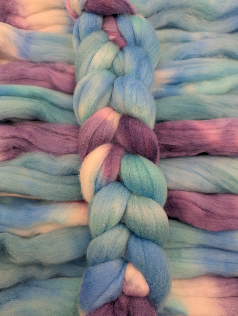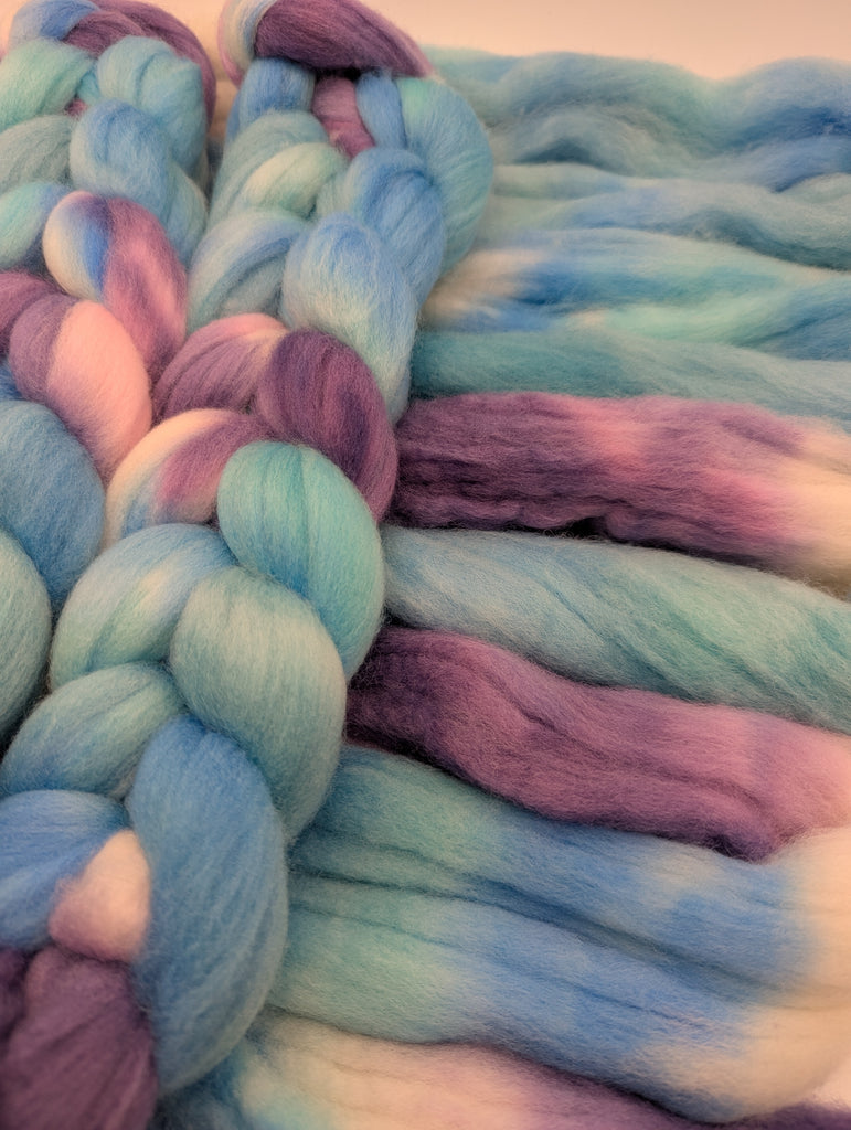Polwarth is a blend of Merino and Lincoln Longwood, resulting in a soft strong wool with a slight shine, great for next to skin, and a lovely spin. 100g/3.5oz